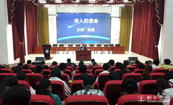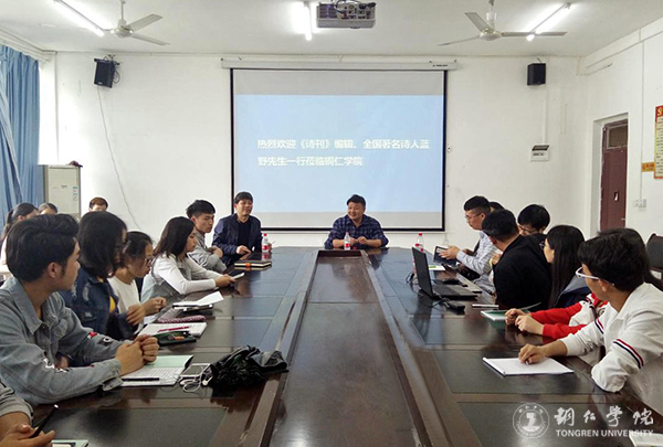 4月20日,中国著名诗人、中国作家协会《诗刊》常务副主编商震、编辑蓝野来伟德官网作诗歌讲座。来自重庆、湖南和省内其他市州、铜仁本土的诗人、作家、文艺理论家,伟德官网人文学院院长田黎星以及北斗文学社指导老师、社员及各院部分同学到场聆听。
