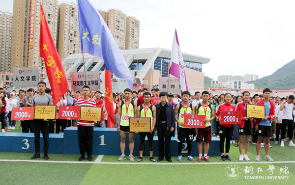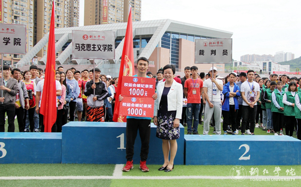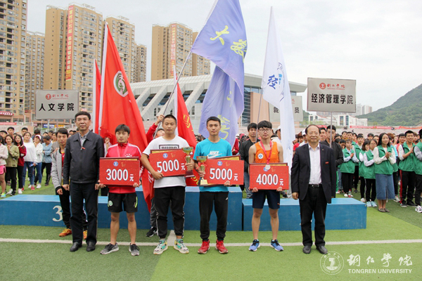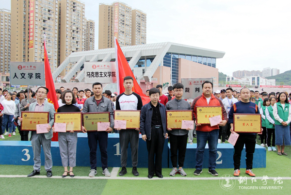 闭幕式上,本届校运会总裁判长文兵宣布教职工、学生团体总成绩和破纪录情况,宣传部部长叶丹宣布精神文明奖及体育道德风尚奖获奖名单。在学生团体总分奖方面,大数据学院、大健康学院并列第一名,经济管理学院荣获第二名,乌江学院荣获第三名。大数据学院,材料与化学工程学院,人文学院荣获精神文明奖;乌江学院荣获体育道德风尚奖。在教职工团体总分奖方面,大数据学院工会组、大健康学院工会组并列第一名,马克思主义学院工会组荣获第二名,艺术学院工会组荣获第三名,国际学院工会组荣获第四名,教育学院工会组荣获第五名,党政办发规处工会组荣获第六名。随后,校领导为获奖团体及个人颁奖。