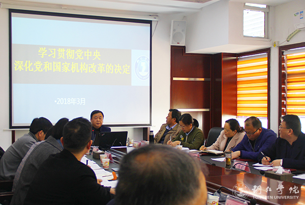 随后,马克思主义学院院长皮坤乾结合习近平总书记在中共十九届二中全会上的讲话精神对《中华人民共和国宪法修正案》进行解读,详细讲解了宪法修改的必要性和宪法修正案的核心要义。人事处处长杨成光结合习近平总书记在中共十九届三中全会上的讲话精神对《中共中央关于深化党和国家机构改革的决定》进行解读,提出应结合学校实际和发展需要,以健全机构和分清强化职能为重点,研究制定bv伟德国际1946深化党政机构改革方案。