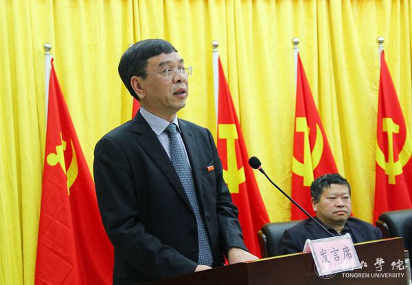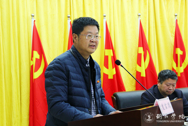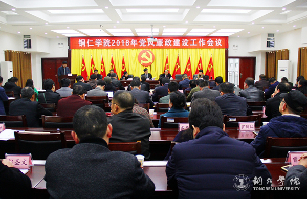 会上,彭吉黔作题为《践行新思想 整装再出发 为实现建设高水平应用型高校续写全面从严治党新篇章》的报告。他对2017年的工作进行了回顾,并对2018年的工作做了安排。2017年,学校的党风廉政建设取得新成效,良好的政治生态环境营造取得阶段性成果,政治建设坚强有力、明责督责更加有效、正风肃纪持续深化、执纪审查扎实推进、民生监督成效突显、党风廉政文化建设成果丰硕、自身建设全面加强。但仍存在有的二级机构党组织抓党风廉政建设的主体责任意识不强,执行党的政治纪律和政治规矩有差距等问题。2018年的重要工作将围绕五个方面展开:一是把政治建设摆在首位;二是持续深化作风建设;三是巩固发展反腐败斗争压倒性态势;四是压紧压实“两个责任”;五是从严从实管好队伍。他指出,要深入学习贯彻党的十九大精神和习近平总书记在贵州省代表团重要讲话精神,忠诚履行党章赋予的责任,做到始终在思想上政治上行动上同党中央保持高度一致、深学笃用习近平新时代中国特色社会主义思想、一刻不停歇地推动全面从严治党向纵深发展。
