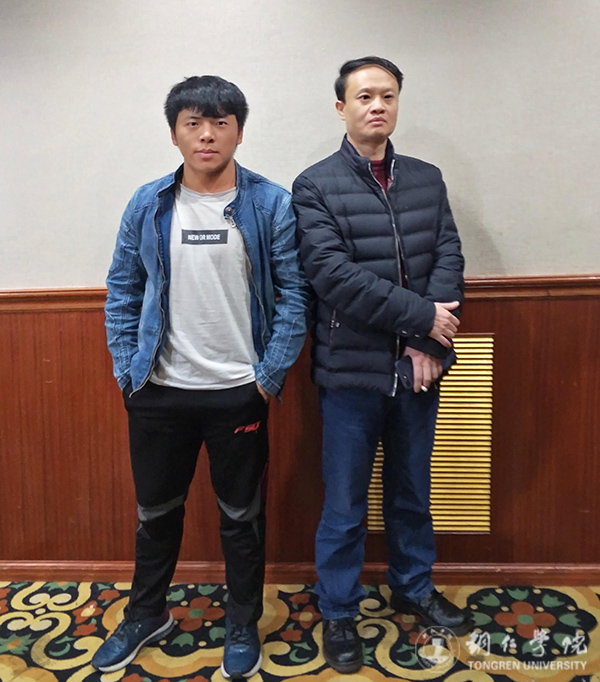 伟德官网学生陈智华(左)与贵州文学院副院长戴冰(右)合影