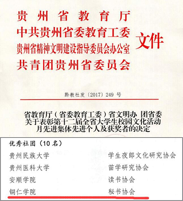 近日,省委教育工委、省教育厅、省文明办、团省委公布了第十二届全省大学生校园文化活动月获奖名单,伟德官网秘书协会荣获优秀社团荣誉称号。