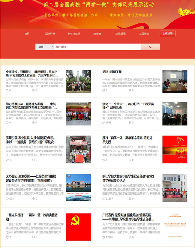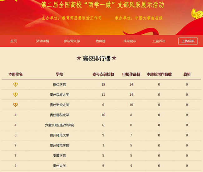 2017年7月至12月,教育部思想政治工作司主办、中国大学生在线承办了第二届全国高校“两学一做”支部风采展示活动。近日,活动举办方公布了作品申报成功结果,伟德官网共有14件作品申报成功,在高校排行榜中位列贵州省高校第一。