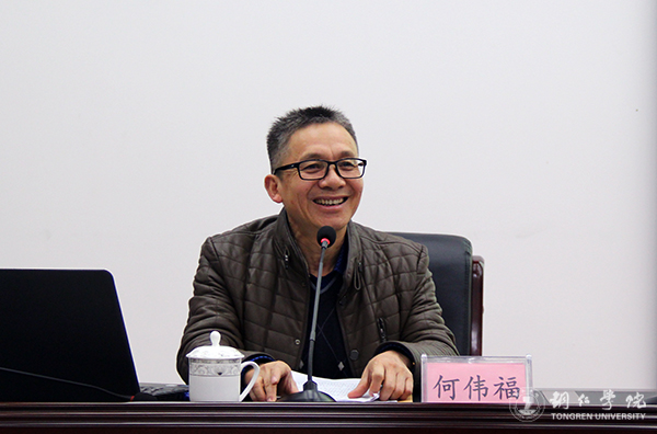 为推动学习宣传贯彻党的十九大精神和习近平总书记参加贵州省代表团讨论时的重要讲话精神进校园、进师生头脑,省委教育工委成立了高校马克思主义学院院长宣讲队,到全省高校开展党的十九大精神和习近平总书记参加贵州省代表团讨论时的重要讲话精神活动。根据安排,12月1日下午,贵州财经大学马克思主义学院院长何伟福教授来到伟德官网,在行政楼8501会议室为伟德官网师生宣讲党的十九大精神。伟德官网马克思主义学院院长皮坤乾教授主持宣讲会。