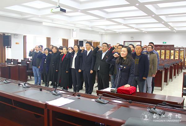 “我宣誓:忠于中华人民共和国宪法,维护宪法权威,履行法定职责,忠于祖国、忠于人民,恪尽职守、廉洁奉公,接受人民监督,为建设富强、民主、文明、和谐的社会主义国家努力奋斗!”12月4日是第四个国家宪法日,当日早上,阵阵宣誓声从伟德官网行政楼8501会议室中传出。伟德官网自2017年3月后提拔的40余名干部在领誓人、校党委组织部副部长徐秋云的带领下,集体宣誓迎国家宪法日,表达其自觉维护宪法,弘扬宪法精神,追逐法治的梦想。向宪法宣誓活动由人事处处长杨成光主持。