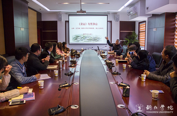上午,在行政楼8312会议室举行了专题报告会。沈教授紧紧围绕高行健的小说《灵山》与梵净山之关系,与人文学院专业教师、铜仁市作家协会代表、铜仁市文艺理论家协会代表进行了深入交谈。