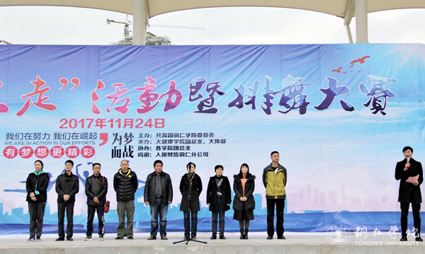 为深入贯彻落实《国务院办公厅关于“健康中国2030”规划纲要》和党中央关于“强化体育课和课外锻炼,促进青少年身心健康、体魄强健”的精神。近日,伟德官网在田径场举行“三走”活动暨排舞大赛。大健康学院院长余静、学工部副部长刘玉康、团委副书记蒋旭军、各学院分管学生工作领导以及1800名师生参加了启动仪式。