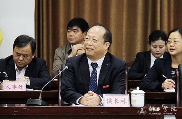 李树新指出,学校不断探索思政工作的新思路、新方法、新途径,突出思想政治教育的实践性和示范性,形成了“明德致用·励志卓越”的思想政治教育特色,呈现出诸多亮点。一是构建了“通识+专业+自主+项目”具有“大山”特质的“山”型人才培养新模式;二是主动融入铜仁发展战略,组织师生积极参与社会主义新农村建设和地方文化经济建设,搭建了广阔的社会实践育人平台,促进了大学生思想政治教育的不断深入;三是打造了校园文化活动月、大学生社团文化节、廉政文化活动、“一院一品”建设等校园文化特色品牌;四是大力构建“明德致用·励志卓越”的荣誉体系,把榜样示范作用贯穿于思想政治教育全过程,塑造身边榜样群体,培育和弘扬社会主义核心价值观。