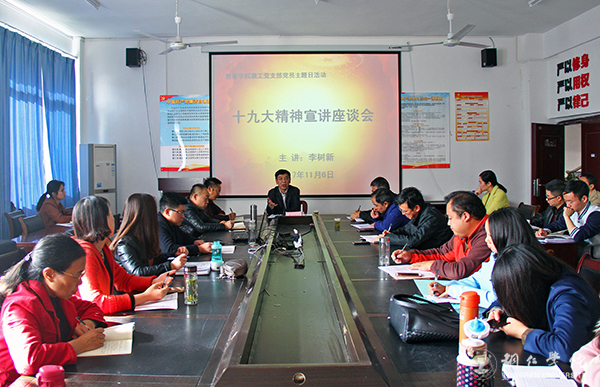 根据学校党委统一安排,11月6日下午,党委书记李树新深入教育学院宣讲党的十九大精神。该院分党委书记刘德平主持宣讲会,院长洪覠及教师党员参加学习。党政办副主任张江林、宣传部副部长杨学礼陪同宣讲。