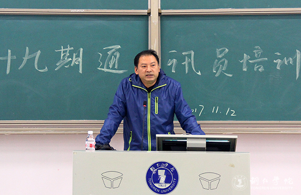 在培训期间共举办了两场讲座,内容涉及新闻摄影、新闻写作,分别由党委宣传部副部长郭明、通讯社指导老师张东方担任主讲。张东方从引导学生认识新闻开始,对新闻的概念、特点、要素、结构、分类及主要属性作了介绍,着重讲解了标题、导语、主体、背景、结尾的写作要求,并与同学们分享了一些写作经验。他说,消息写作必须客观真实,必须站在旁观者的角度对事实进行客观报道,讲究真实、及时、准确,内容忌长、空、细。他强调了新闻写作的有关要求,指出通讯与文学等其他文体的不同之处。他指出,在写会议消息时必须用语简洁、客观,要注意提炼和概况重要事实,并在写人物的职位和姓名时要做到准确无误。同时,他还教同学们在校园里如何去寻找新闻写作素材,并结合一些新闻作品分析了新闻写作常出现的问题,建议学生多写、多看、多思、多问,积极主动,善于总结经验。郭明主要从新闻摄影概述、摄影技巧、图片后期处理方面展开讲述。他说,新闻摄影讲究时效性、真实性、典型性、现场感,对形象的拍摄要进行观察与选择,挑选最佳角度。他还介绍了如何使用相机、如何取景与构图以及图片的后期处理。他强调,新闻摄影是一种以图文并茂直观的形式来报道新闻、传播信息,要求通讯员拿起手中的相机要担任起校园网络宣传员的职责,关注校园舆情,共同维护安全稳定的校园网络环境。他幽默风趣的讲学赢得了热烈的掌声。