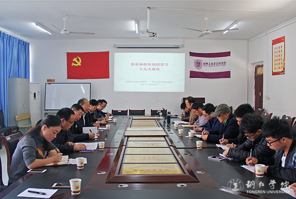 10月30日下午,校长侯长林召集分管部门和联系的专业学院到材料与化学工程学院会议室学习宣传贯彻党的十九大精神和习近平总书记在参加贵州代表团讨论时重要讲话精神,教务处处长舒华、发展规划处处长罗静和副处长吴承品、审计处处长李社琴、国际交流处副处长刘姗、党政办副主任孙向阳、材化学院和农林学院的领导班子、部分学生代表参加宣讲会。