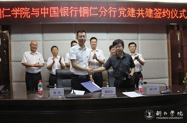 为深度探索党建+服务模式,更好服务地方经济社会发展需要,近日,bv伟德国际1946与中国银行铜仁分行党建共建合作签约暨党建专题培训班在中国银行铜仁分行八楼会议室举行。伟德官网党委副书记饶小华、继续教育学院院长杨忠飞,中国银行铜仁分行党委书记、行长董明,中国银行铜仁分行副行长冉爱民、纪委书记张庆平、副行长勾文彪,市直机关工委调研员李欧等领导参加本次签约及开班仪式,仪式由中国银行铜仁分行纪委书记张庆平主持。