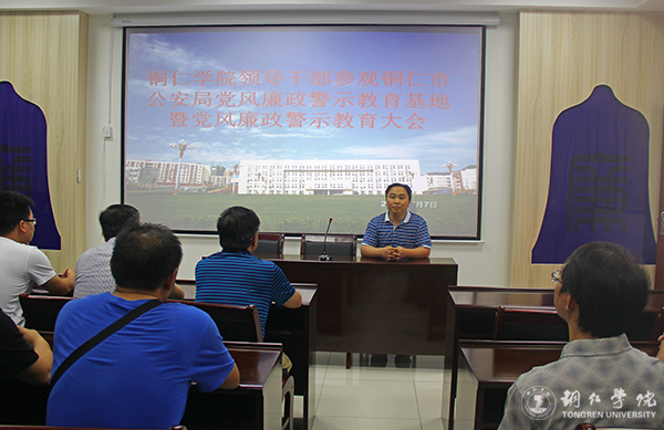 为了推动廉政文化进校园“八个一”活动,进一步加强党风廉政建设,7月7日下午,伟德官网组织副处级干部及部分重要岗位科级干部参观铜仁市公安局党风廉政警示教育基地并举行党风廉政建设警示教育大会。