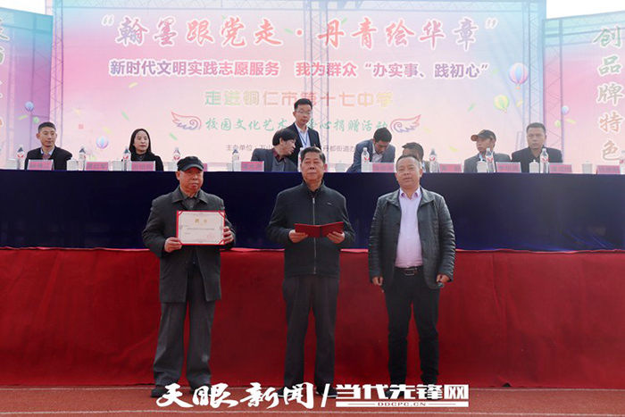 2021年10月以来,伟德官网关工委老同志赴高楼坪中学、亚鱼完小、枫香九校、铜仁十七中等乡村学校和易地搬迁学校开展“我为群众办实事”活动。12月7日,校关工委常务副主任谭光涛、副主任谢元炳、段振良等老同志来到位于万山区的易地搬迁学校铜仁十七中学开展捐赠慰问活动并参加该校书画大赛活动。铜仁市残疾人书画协会、贵州银行铜仁分行等协作单位领导及十七中500余名师生参加了活动。