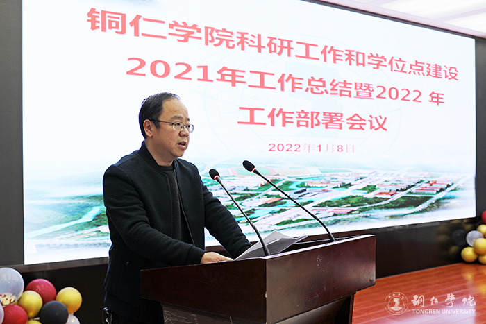 会上,科研处副处长周刚通报了2021年bv伟德国际1946科研工作情况及2022年科研工作计划。他指出,2021年是“十四五”开局之年,也是学校科研工作迈向高质量发展阶段的关键之年,学校深入推进“育人为本、科研先行”发展战略,科研项目建设开创了新局面,科研成果获奖创造了新历史,科研成果转化实现了新突破,科研团队建设迈入了新台阶,科研成果产出展现了新亮点,产研融合建设取得了新成绩,硕士点建设展现了新作为。他提出了学校2022年科研工作的奋斗目标,并就顺利实现目标任务讲了三点意见:一是要建立健全高水平科研成果产出的体制机制,为教师营造一个良好的科研氛围;二是要建立实体科研机构,增强科技创新综合能力;三是要实施重点科研项目培育计划,产出高水平科技创新成果。