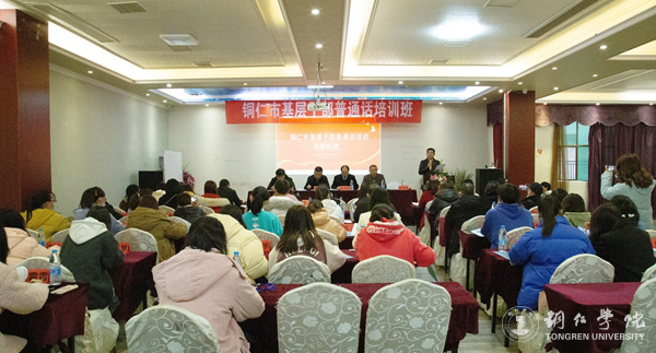 12月10日至12日,由伟德官网与铜仁市民宗委联合举办的铜仁市基层干部普通话培训在希悦大酒店开班。伟德官网人文学院党委书记、院长孙向阳,铜仁市民宗委党组成员、副主任杨成刚、伟德官网人文学院副院长张建刚、铜仁市民宗委民语所负责人巫洋、bv伟德国际1946贵州省民汉双语服务基地办公室主任刘太胜出席开班仪式,来自铜仁市民宗委、各区县民宗局干部,基层双语干部以及伟德官网学生代表共60人参加培训,开班仪式由刘太胜主持。