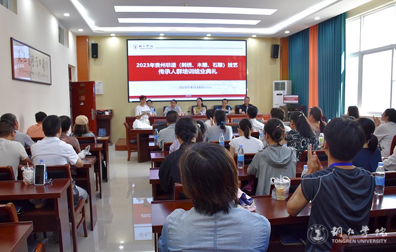 8月23日,由贵州省文化和旅游厅主办、铜仁市文体广电旅游局协办、伟德官网承办的2023年贵州省非物质文化遗产传承人群手工技艺培训班结业典礼在艺术学院举行。艺术学院党委书记徐美、副院长谢云中,铜仁市文体广电旅游局非遗科科长刘彪,铜仁市周逸群纪念馆馆长杨文静,艺术学院非遗工作站全体教师及培训班全体学员参加典礼。