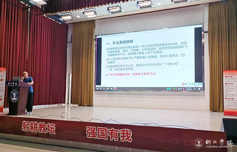 讲座上,黄朝阳以图文并茂的形式讲解了传染病的概念、传染病的传播途径、传染病防控措施以及患者注意事项等,倡导大家要积极参加国家肺结核防控活动,共同努力,有效防控肺结核。他指出,学校的结核病具有突发性、集中性等特点,要做好新生入学筛查和结核病日常管理防控工作,加强学生对结核病的认识,提高重视程度,及时就医,主动上报。