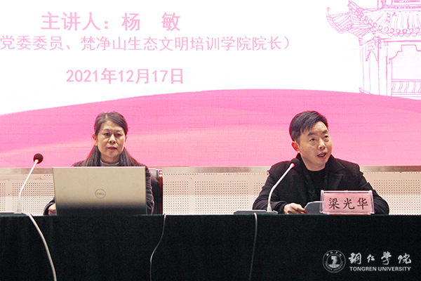 铜仁市委宣讲团成员、市委党校党委委员、梵净山生态文明培训学院院长杨敏作宣讲