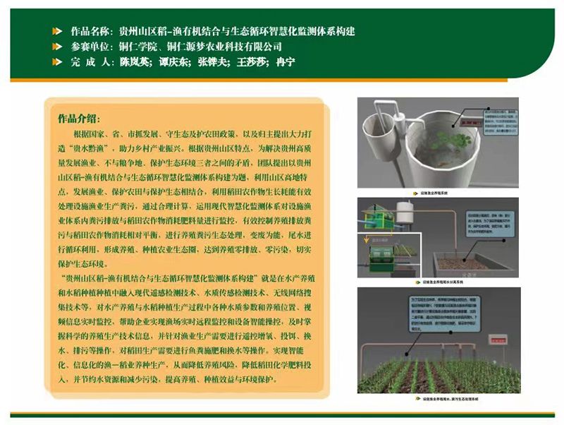 大赛结合行业需求,共设置智慧渔业技术赛道、智慧渔业装备赛道和智慧渔业系统赛道3个比赛赛道。伟德官网水产养殖学专业学生结合实际,参加了智慧渔业系统赛道。经现场答辩、评委提问等环节的激烈角逐,最终,学生作品《贵州山区稻鱼有机结合与生态循环智慧化监测体系构建》获二等奖。