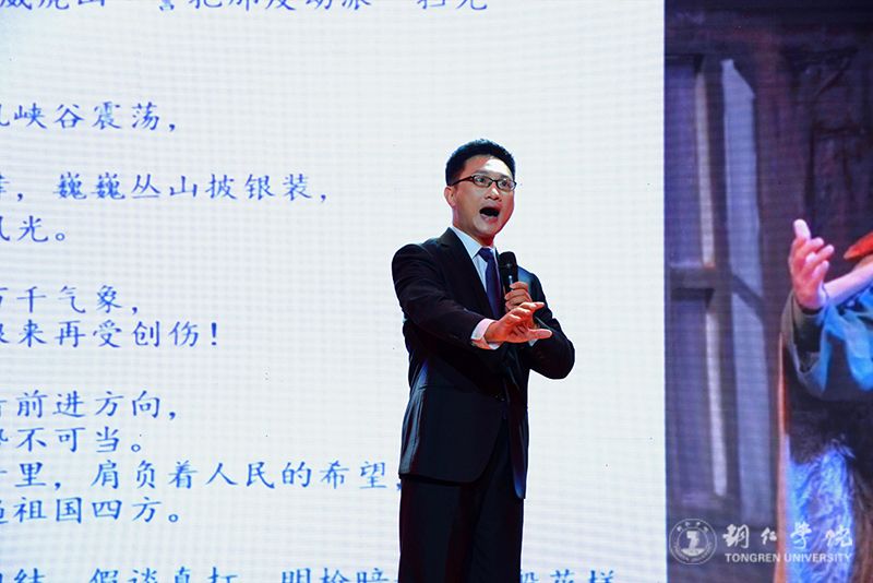 本次迎新晚会共有两个篇章,十四个节目,各类演唱、舞蹈、朗诵等节目别具匠心。晚会上篇“奋进逐梦”。教师乐队带来的歌曲《红日》,一出场就带动了现场的气氛,还有《夜空中最亮的星》,更让同学们产生了共鸣,自发地跟着合唱。张希望和张玉芹共同演绎的《真理之子》,仿佛在大家眼前重现了中国共产党的百年风雨历程。其后,郭征帆老师的一曲京剧《智取威虎山》,更让在座的同学深深感受到了中国京剧的魅力。优秀校友、铜仁本土歌手田菊用优美的嗓音献上了歌曲《No Fear in my heart》《我好想你》,深得大家的喜爱。