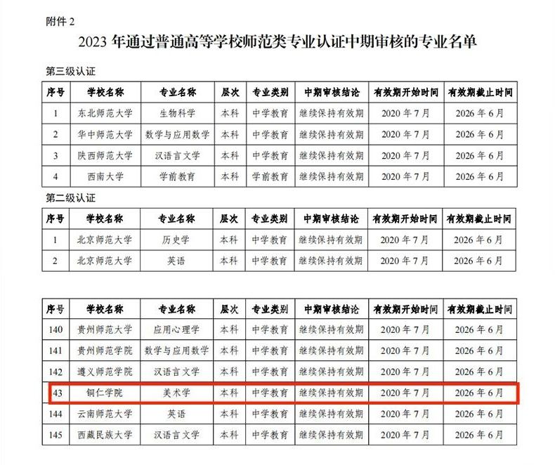 伟德官网美术学专业于2020年顺利通过师范(二级)专业认证,系全国首批通过师范类二级认证的地方高校美术学专业,也是贵州首批通过的师范专业二级认证的五个试点专业之一,标志着伟德官网应用转型发展在专业建设方面取得新的突破。