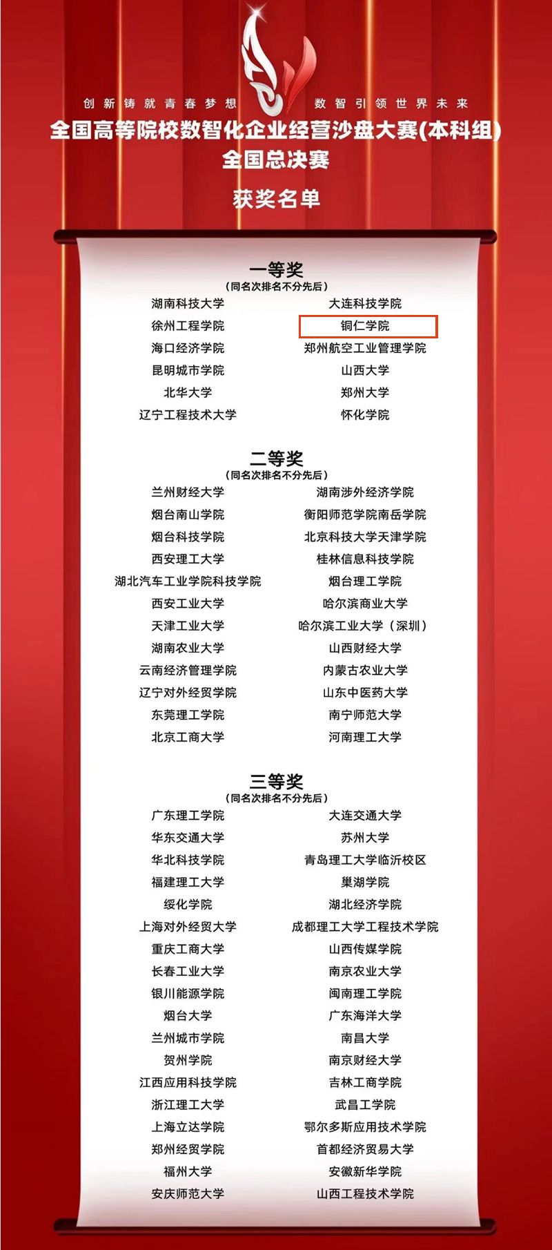 本次全国总决赛,共有来自全国30个省、区、市117所高校代表队的700余名选手及指导教师通过校、省两级激烈竞争和严格选拔晋级入围。伟德官网与铜仁职业技术学院联办的会计学专业2021级专升本3班邓子涵、陆耀、杨成玉、刘程骞四位同学组成的团队在贵州省选拔赛中脱颖而出,获得参赛资格前往郑州参加全国总决赛。四名同学在老师的指导下刻苦训练、积极备战,不断挑战和突破自我,在比赛过程中沉着冷静、积极应对,最终获得一等奖的骄人战绩。