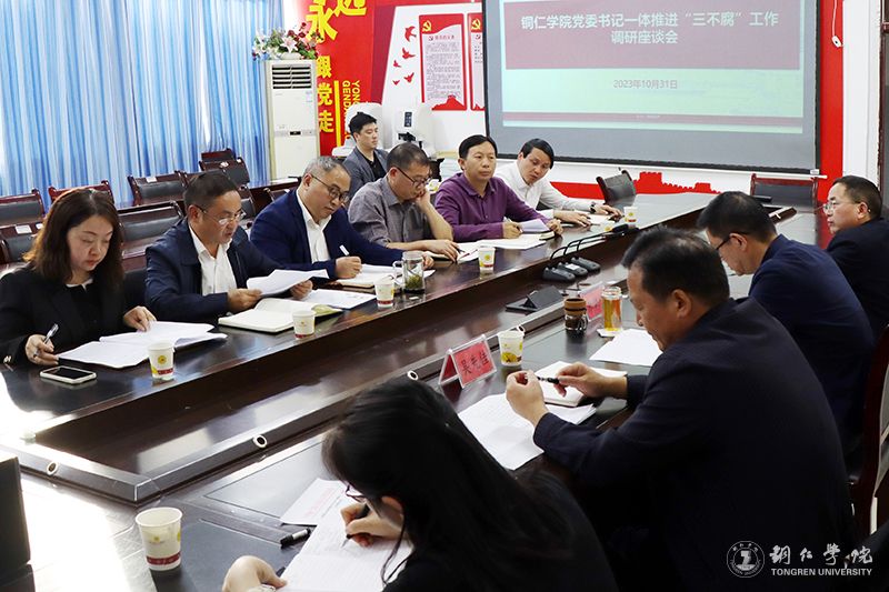 10月31日下午,党委书记朱洪波在马克思主义学院主持召开一体推进“三不腐”工作调研座谈会。纪委书记吴先佳,党委委员、组织部部长梁正海,党委组织部正处级组织员、党政办副主任何波,纪委(监察专员办)综合室副主任黄广丽,马克思主义学院、教育学院、文学与传媒学院、哲学与历史文化学院、艺术学院、国际学院党委负责人参加座谈会。