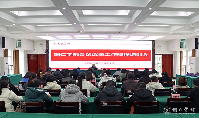 为进一步规范学校议事决策程序,提高决策效率和水平,推进学校治理体系和治理能力现代化,学校党政办于12月1日下午在行政楼8501会议室组织召开会议议事工作规程培训会。参加培训会的有各学院党政办主任和各部门综合科科长共40人。