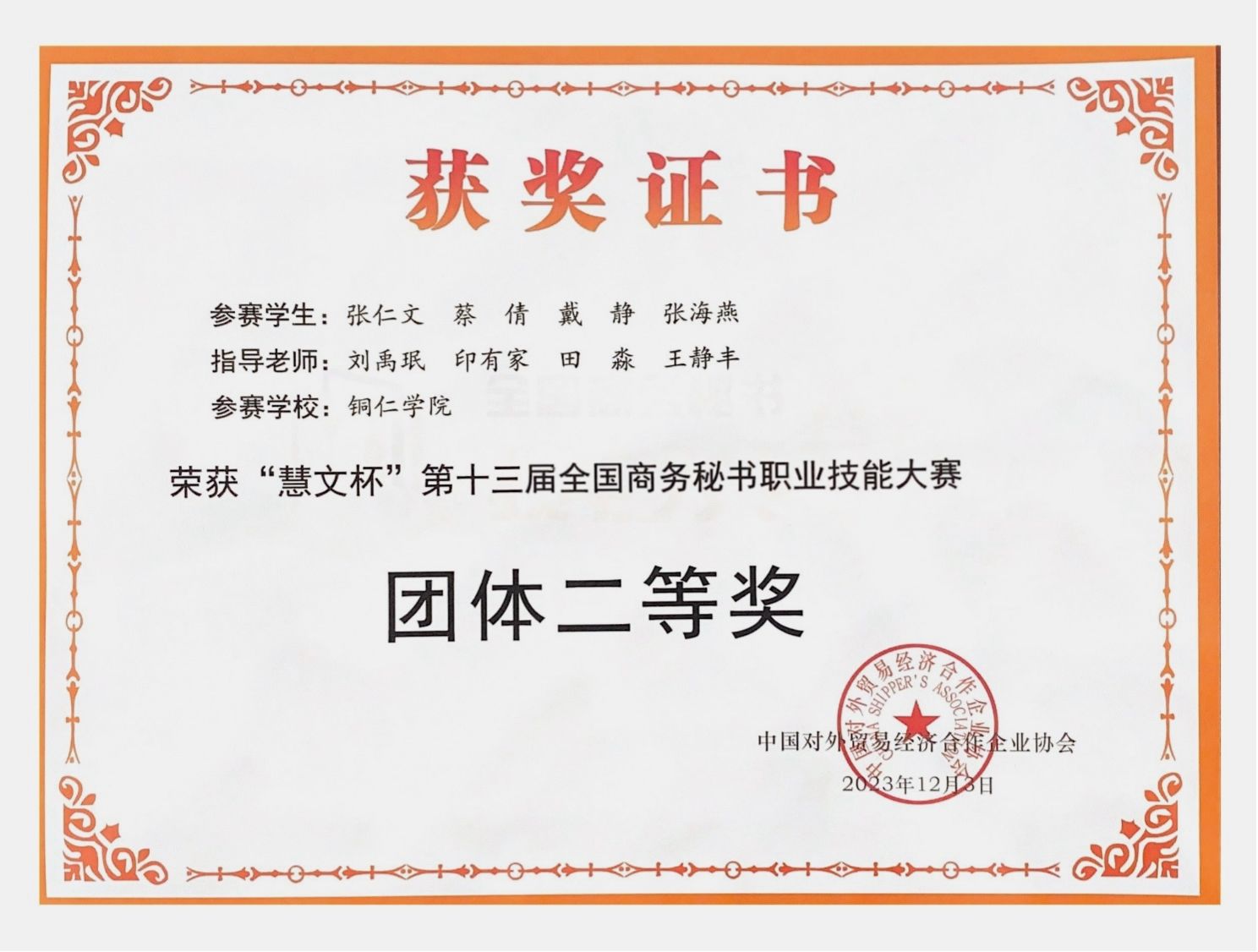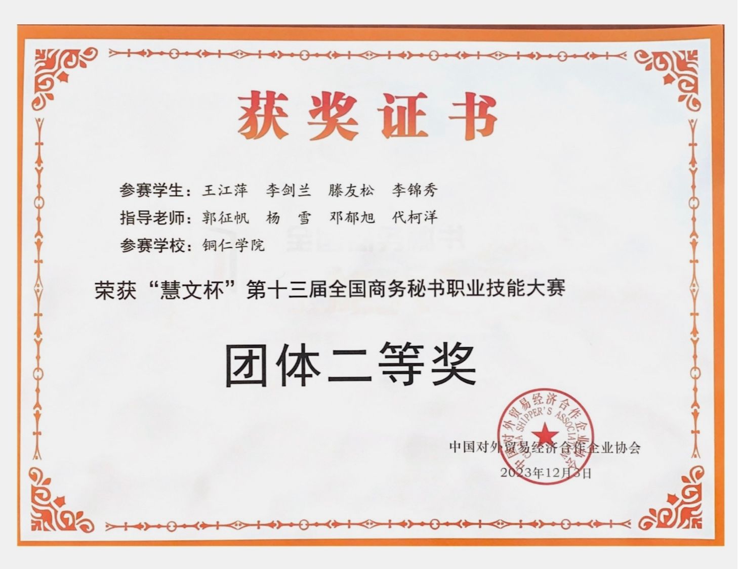 12月1日至3日,由中国对外贸易经济合作企业协会主办的“慧文杯”第十三届全国商务秘书职业大赛在浙江警官职业学院举行。包括伟德官网在内的全国73所院校的108支代表队近600名师生相聚西子湖畔,同台竞技。伟德官网团队荣获团体二等奖2项。