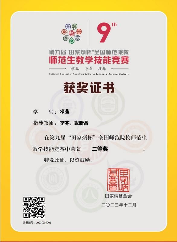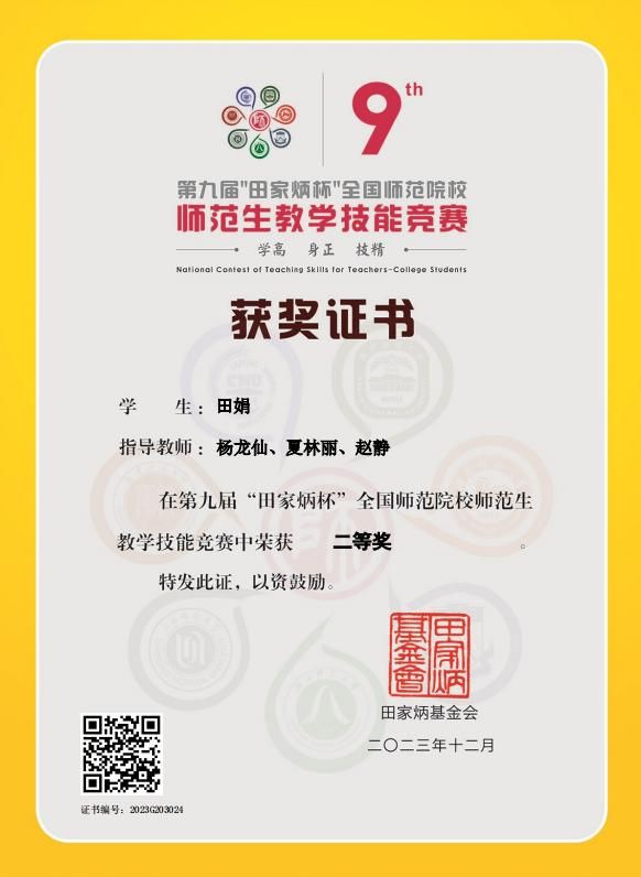 近日,第九届“田家炳杯”全国师范院校师范生教学技能竞赛决赛在浙江师范大学落下帷幕。全国共计226所学校1611名选手参加了本次赛事,经过激烈的角逐,伟德官网参赛选手获得国家级二等奖2项、三等奖1项、优胜奖2项。