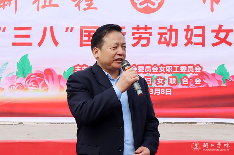 活动开始前,全体人员在操场整队集合。纪委书记吴先佳代表学校,向全体女性员工在过去的一年中对学校所做出的贡献表示衷心感谢,希望全体妇女老师在今后的工作生活中,坚持学习贯彻习近平新时代中国特色社会主义思想,立足岗位,创新争优,为学校高质量发展贡献出坚定的女性力量。学校工会对现场到来的女性员工赠予了康乃馨花束以表慰问。