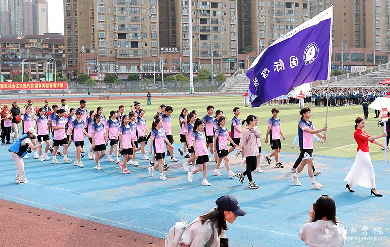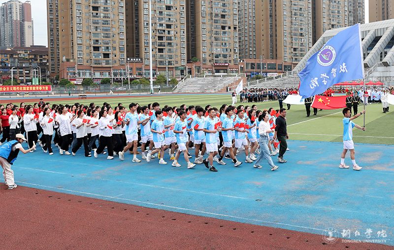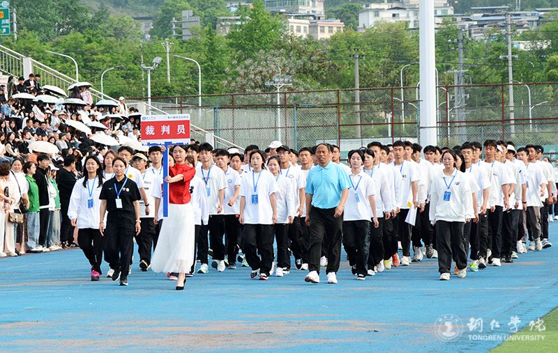 开幕式开始前,在激昂的音乐中,伴随着主持人振奋人心的解说,国旗、校旗、会旗方阵以及各二级学院方阵、教师代表方阵、裁判员方阵高举旗帜,带着饱满的精神,迈着整齐的步伐,昂首阔步地走过主席台。各方阵代表的同学与老师,衣着整洁,面带笑容,为大会献上了精彩纷呈的入场演出,尽显铜院师生昂扬向上的精神风貌。