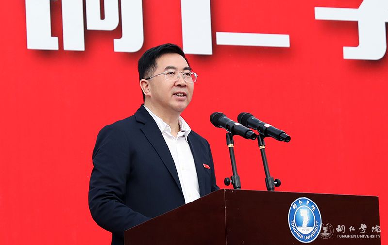 开幕式在庄严肃穆的国歌声中拉开帷幕。朱克乾致辞指出,田径运动会,既是学校一年一度的体育盛会,也是展现“苦心励志·追求卓越”铜院精神的盛大集会。他说,体育兴则国兴,体育肩负着人民幸福、社会发展的使命;体育强则国强,体育承载着强体铸魂、塑造新人的时代责任。长期以来,伟德官网深入贯彻落实习近平总书记关于教育、体育的重要论述,以及全国教育大会、全省高等教育高质量发展大会精神,坚持育人至上,人格、体魄并重,把体育精神融入人才培育全过程,丰富了校园文体生活,促进了师生身心健康发展。他预祝本届运动会取得圆满成功,祝愿广大师生享受体育乐趣、拥有健康体魄、获得幸福人生。