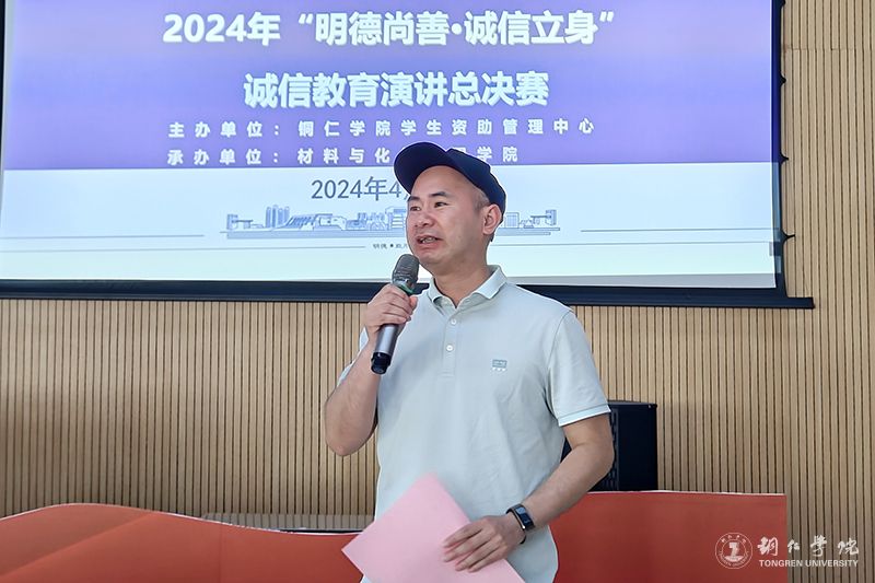 4月28日,由伟德官网学生资助管理中心主办、材料与化学工程学院承办的2024年“明德尚善·诚信立身”演讲比赛在博思楼306教室举行。材化学院党委书记吴思展,学生资助管理中心副主任刘朝军、宋谋胜出席;各二级学院学生科负责人担任评委;各二级学院初赛选拔出的十名选手参加总决赛。