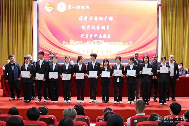 大会在庄严的国歌声中拉开帷幕。罗静宣读了表彰文件;出席大会的领导为获表彰的先进集体和个人进行了颁奖。此次表彰大会,共有4个五四红旗团总支、11个五四红旗团支部、4个优秀学生会、4个优秀社团管理部、4个优秀社团、3个优秀青年志愿者服务大队、4名优秀共青团干部(教师)、72名优秀共青团干部(学生)、101名优秀共青团员、72名优秀青年志愿者获得了表彰。
