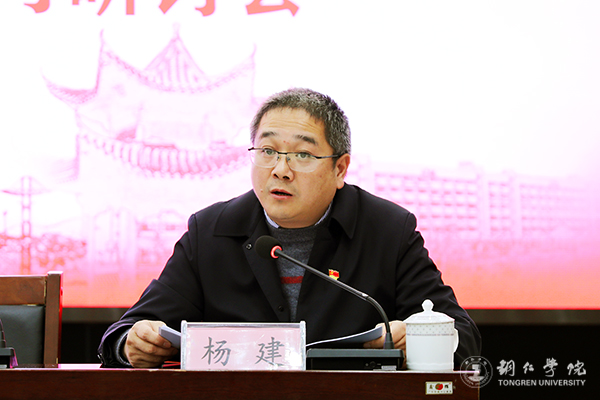杨建说,我们要深刻领会习近平总书记在中央人才工作会议上“深入实施新时代人才强国战略,加快建设世界重要人才中心和创新高地”重要讲话精神实质,扎实推进学校服务地方经济社会发展所需人才培养,全面落实高校立德树人根本任务。要秉持“明德致用、追求卓越”,培养高素质应用型人才,办人民满意大学;要按照“铜仁需求、国家标准”,供给地方创新人才,建设黔东人才创新高地;要坚持“立足铜仁、服务地方”,供给地方产业人才,服务铜仁经济社会发展。