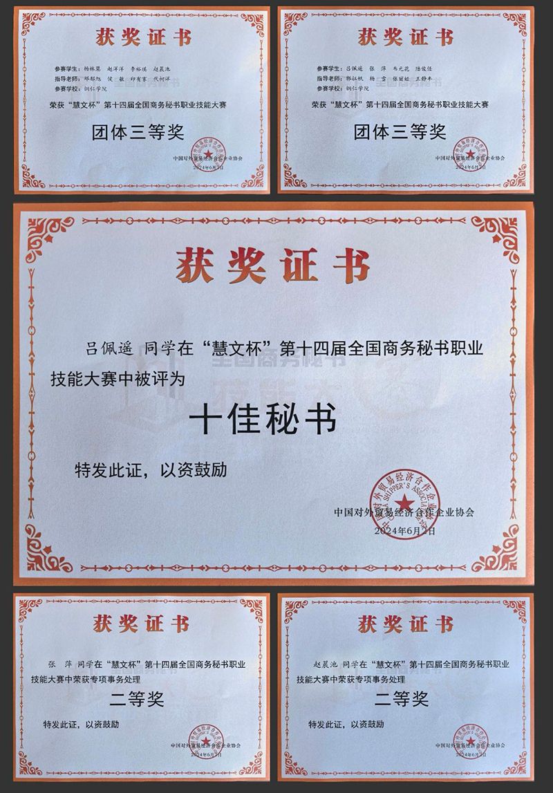 5月31日至6月2日,由中国对外贸易经济合作企业协会主办的“慧文杯”第十四届全国商务秘书职业技能大赛在湖南司法警官职业学院举行,来自全国68所本专科院校的95支代表队同台竞技,共展秘书学子风采。