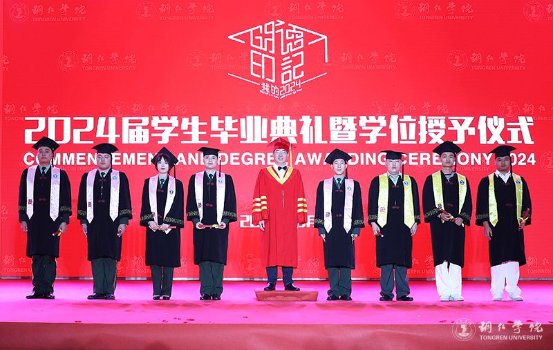 校长朱克乾为毕业生拨穗、颁发证书并合影