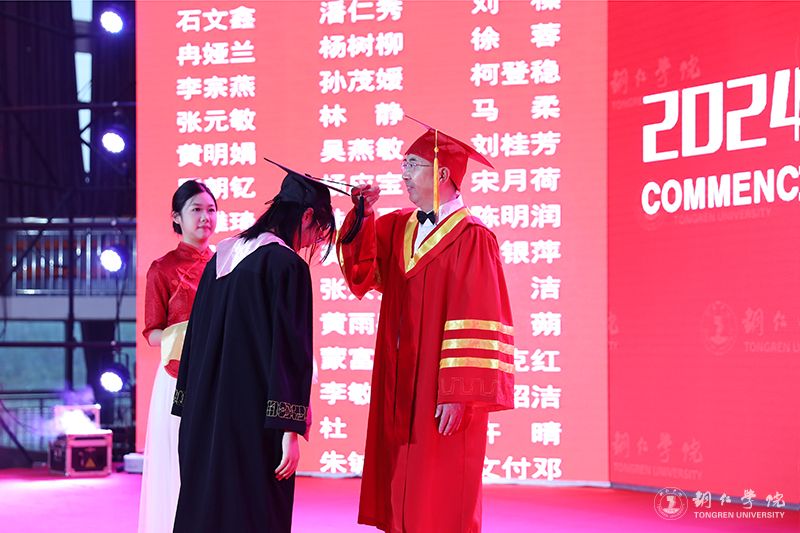 典礼上,朱克乾代表学校向同学们表示热烈的祝贺,向辛勤培育同学们的父母和各位老师致以衷心的感谢。他说,大学四年,同学们不断拼搏、历练和成长,用实际行动谱写着新时代的青春之歌。毕业季,是一个离别与祝福的季节,也是一个收获与感恩的时刻。毕业礼成,同学们就将踏上新旅程,奔赴新使命。他用三个“未来可期”,为同学们送上鼓励与祝福。未来可期,需要我们用拼搏持续淬炼自我。同学们在未来的人生新征程中,要始终牢记习近平总书记“坚持拼字当头,敢于拼搏、善于拼搏”的殷切期望,以“千磨万击还坚劲”的顽强,在大潮奔涌的新时代洪流中激越高歌。未来可期,需要我们用拼搏自觉勇担重任。同学们在未来前行的路上,要以“自信人生二百年,会当水击三千里”的豪迈,勇挑时代重任,在波澜壮阔的新时代画卷中,奏响激昂澎湃的青春乐章。未来可期,需要我们用拼搏深入涵养家国情怀。同学们在可期的未来,要永葆“国之大者”的深厚情怀,紧跟中华民族伟大复兴的时代强音,传承“位卑未敢忘忧国”的情怀,谱写好家国合奏的时代交响曲,共岁月峥嵘、留历史回响。