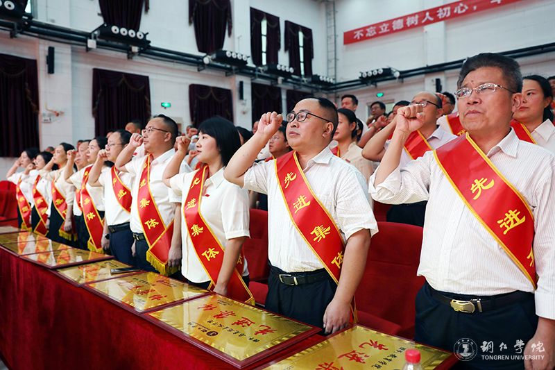会议最后,还举行了新教师入职宣誓仪式和老教师重温《贵州教师誓词》,在场的全体教师起立,一同举起右手,进行了庄严宣誓。