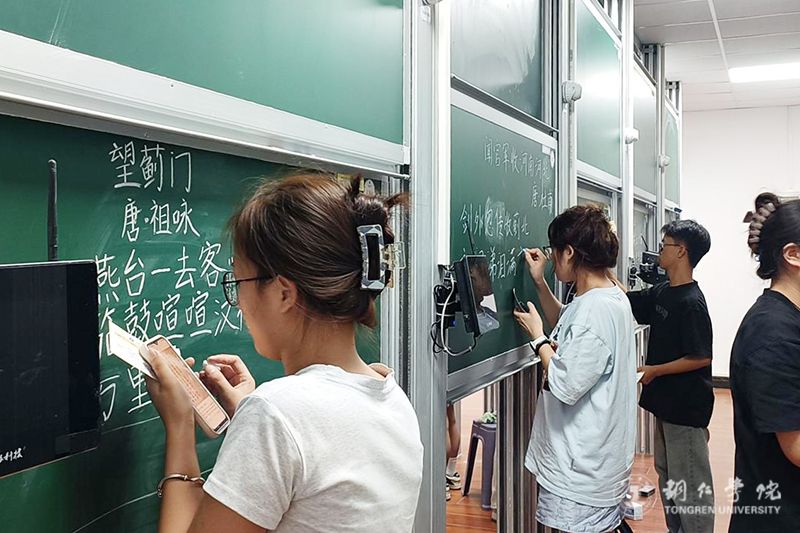 近日,伟德官网第三届“三书”大赛在学科楼“三笔字”(硬笔字、毛笔字、粉笔字)实训室举办,来自各二级学院内部选拔推荐的33名选手参加校级决赛。