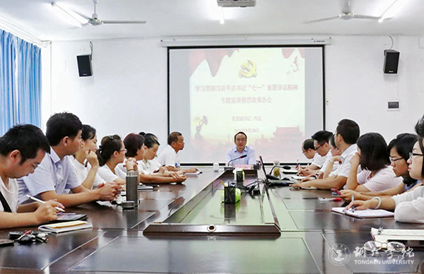 代亮强调,学习好、贯彻好习近平总书记“七一”重要讲话精神,是当前和今后一个时期的一项重大政治任务。要把学习“七一”重要讲话精神作为当前理论武装工作的重中之重,作为党史学习教育的核心内容,要纳入干部教育培训的必学内容,教育引导广大党员、干部、群众深入学习、深刻领会,并同坚定不移培养社会主义建设者和接班人这一根本任务相结合,同推动bv伟德国际1946高质量发展相结合,努力讲好bv伟德国际1946故事。特别是人文学院党政班子要科学谋划,举旗定向,发挥专业特色优势,勇担传承和弘扬中华优秀传统文化的历史使命,主动服务地方经济会社发展,努力讲好人文学院故事,传递人文学院好声音。