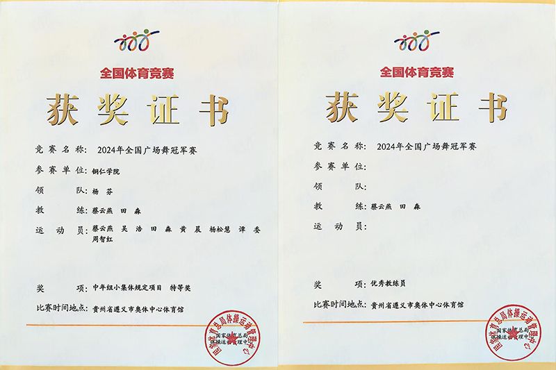跨越山海,相聚红城。11月4日至6日,2024年全国广场舞冠军赛在贵州省遵义市奥体中心体育馆举行,来自全国各专业院团、高等院校、中小学教师队伍、幼儿园教师队伍、社会组织等30支队伍650余名选手欢乐开跳、“舞”动红城,用激昂的舞步激扬全民健身活力,共享美好健康生活。伟德官网教师参赛队和学生参赛队在比赛中荣获了2项特等奖、1项一等奖和团体奖第一名的优异成绩。