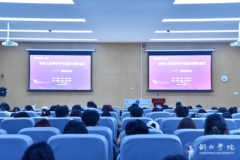 11月15日,伟德官网在博思楼举办“铸牢中华民族共同体意识”理论宣传二人讲活动,伟德官网龙金菊教授和蒋欢宜教授担任主讲,来自各个学院的学生代表到场聆听了宣讲。