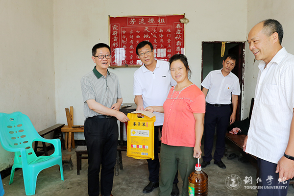 在共和镇和茶坨村,朱洪波一行分别听取了共和镇党委书记曾秀容、提名镇长赵贡湖、茶坨村第一书记朱俊才以及伟德官网驻村干部贾毅峰关于基层组织建设、乡村振兴、产业发展等方面工作介绍,详细了解共和镇以及茶坨村的整体发展情况,并就茶坨村的乡村振兴、产业发展等工作提出了建议。朱洪波代表学校向茶坨村捐赠了产业项目资金5万元;朱洪波一行还走访慰问了茶坨村的生活困难户,了解他们的生活情况,给他们送去了学校的关心关怀。