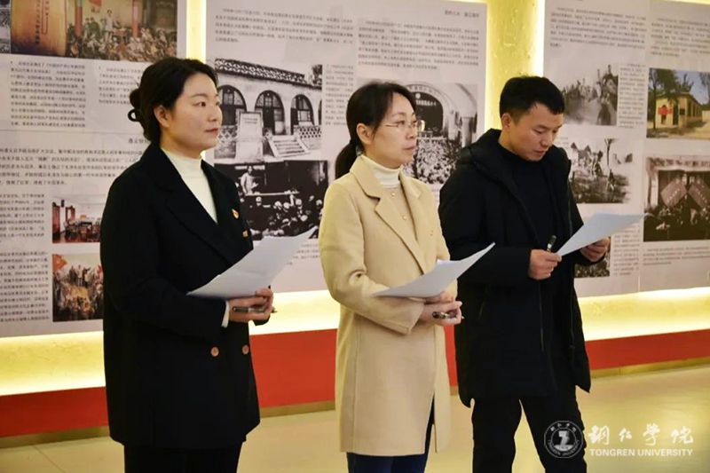 为深入贯彻落实习近平总书记关于“用好红色资源,传承好红色基因,把红色江山世世代代传下去”的重要论述,运用好学校党史教育馆等红色场馆,增强学生的爱国情怀,近日,由马克思主义学院承办的第三十一届校园文化活动月系列活动之“红色星火点亮黔东大地”红色讲解员大赛在党史教育馆举办。校团委副书记张朝飞、党委宣传部理论科科长王雪、图书馆读者服务科副科长王业荣担任评委。来自各二级学院推荐的参赛选手参加了比赛。