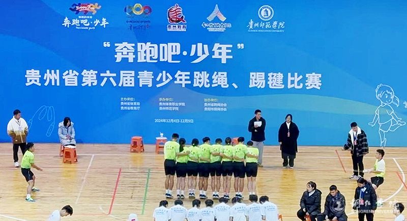 12月4至8日,由贵州省体育局、省教育厅主办的2024年“奔跑吧·少年”贵州省第六届青少年跳绳、踢毽比赛在贵州师范学院举行。伟德官网派出由党委学工部部长张钱和大健康学院党委书记、院长余静任领队,马宁、宁丽娟2位老师任教练员和16名运动健儿组成的队伍参加比赛,与来自全省302支队伍3400余人共同角逐。