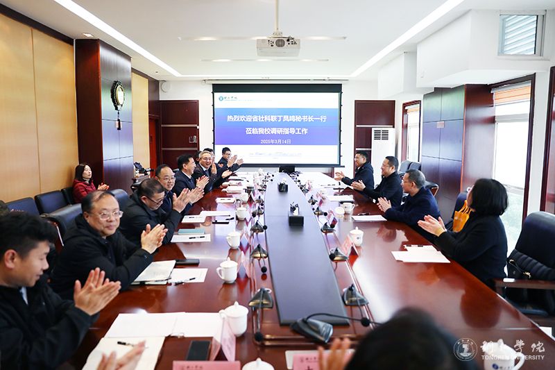最后,丁凤鸣作了讲话。他对学校发展取得的成绩和师生干事创业的精气神表示肯定,对学校提出的问题一一作出回应,对学校的社科工作进行了指导。他表示,支持学校发展,帮助学校办好教育是义不容辞的事情。省社科联将积极协调资源,助力学校整合优势学科,加强跨学科研究合作,打造更具影响力的社科研究平台,不断推动社科工作高质量发展。