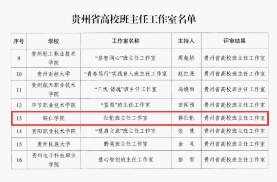 近日,贵州省教育厅公布了贵州省高校心理名师工作室、班主任工作室评选结果。历经学校推荐、资料评审、实地考察、现场答辩、网络公示、厅长办公会审议等环节,由伟德官网文学与传媒学院郭征帆老师领衔的“征帆班主任工作室”入选贵州省高校班主任工作室,标志着我校在班主任队伍建设领域取得新突破。